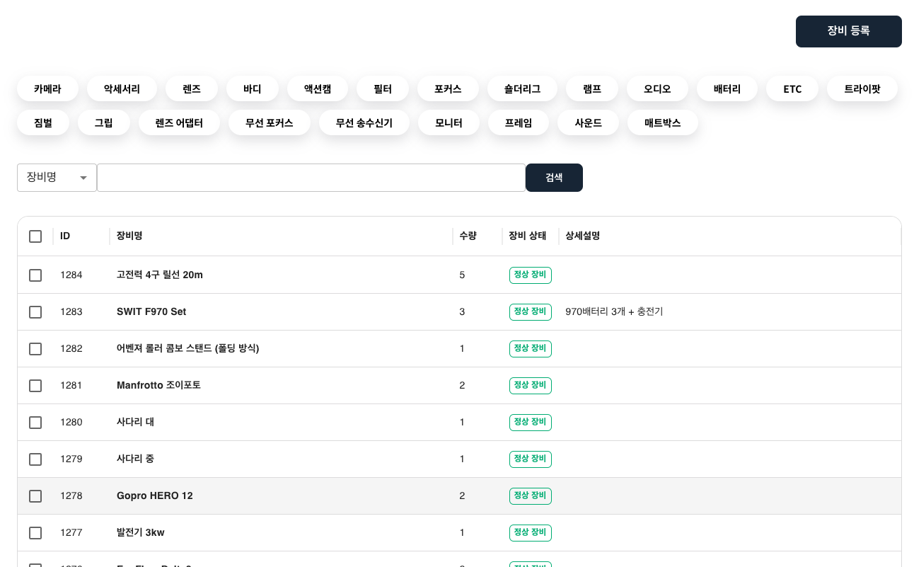 장비 등록, 검색, 관리를 쉽게! 🙌