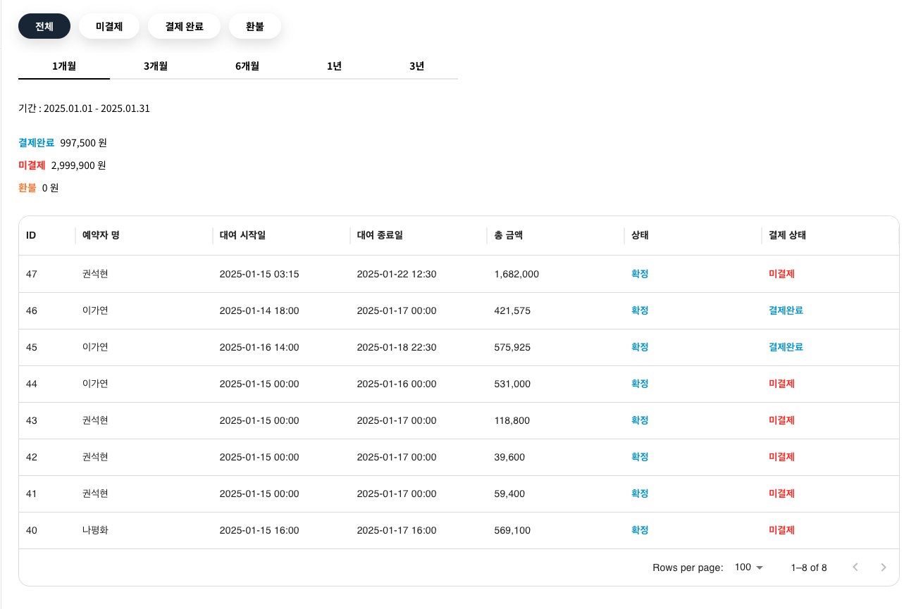 회원별, 예약별로 정산 내역을 한 번에 확인! 💡